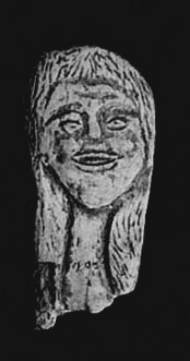 5e phase : de juillet 1926 à juillet 1927 : apparition de quelques menus objets : galets marqués de petites cupules comme des dés à jouer ; siffler et « boîtes à fard » en phalanges creusées et illustrées de signes et de dessins, etc, de dessins en perspective. Apparition de constructions en pierres sèches (tombes). » 22